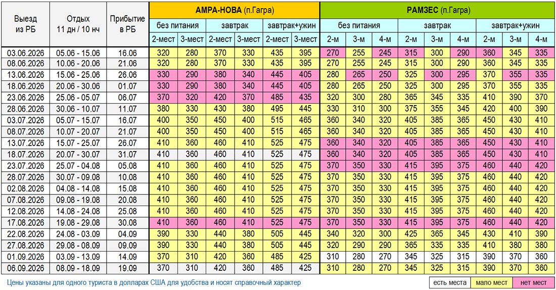 - Ребёнок до 6 лет размещается без места бесплатно при занятых основных спальных местах, оплата за место в автобусе 180 долл. США + 140 руб.